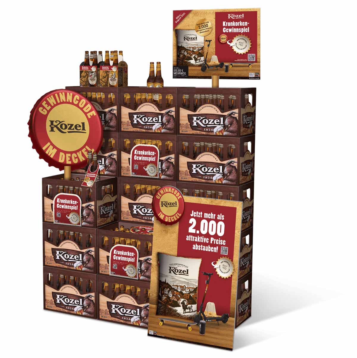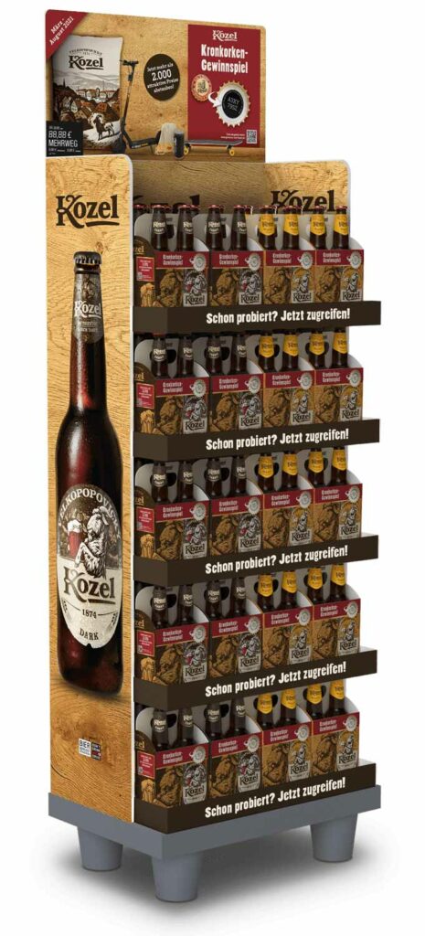 Hauptbestandteil der Promotion war ein Code im Kronkorken, den der Shopper online eingeben und sich damit die Chance auf einen von 2.000 gebrandeten Kozel-Gewinnen sichern konnte.